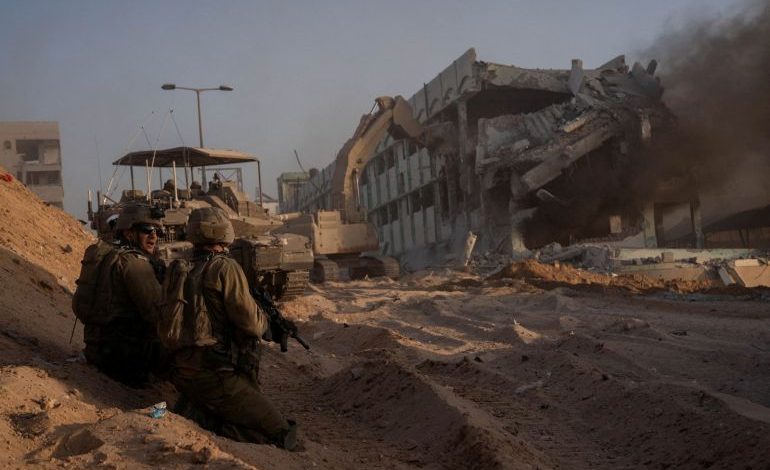 وتخوض القوات الإسرائيلية المتوغلة في قطاع غزة اشتباكات عنيفة مع مقاتلين فلسطينيين على محاور التقدم شمال القطاع وجنوبه، بالإضافة إلى محاصرتها مستشفيات القطاع المكتظة بالنازحين.
