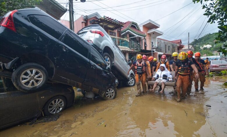 وأعلن الرئيس الفيليبيني فرديناند ماركوس الخميس “حال الكارثة الوطنية”، سامحا للحكومة بتخصيص أموال للمساعدات الإنسانية وفرض سقف لأسعار السلع الأساسية، بعدما غمرت المياه مدنا بأكملها في مقاطعة سيبو، الأكثر تضررا في البلاد.
