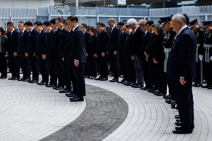 وشهدت هونج كونج، اليوم السبت، مراسم حداد رسمية؛ حيث وقف جون لي ومسؤولون حكوميون وموظفون مدنيون دقيقة صمت لمدة ثلاث دقائق أمام مقر الحكومة المركزية، بينما نُكست الأعلام حدادًا على الضحايا. كما وُضعت دفاتر تعازٍ في 18 موقعًا بأنحاء المدينة لإتاحة الفرصة للسكان لتقديم واجب العزاء.