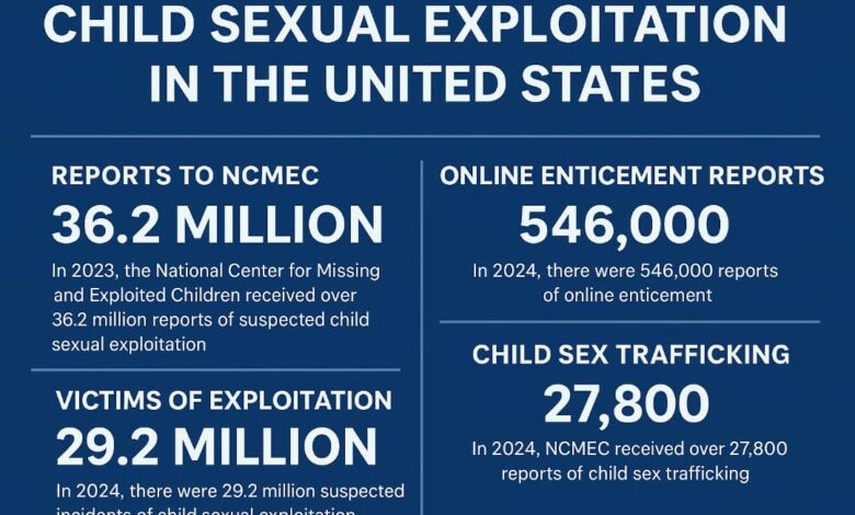 بيانات الجهات الرسمية في الولايات المتحدة تشير إلى أن ملايين البلاغات بشأن استغلال جنسي للأطفال تُسجّل سنويًا، بمئات الآلاف من محاولات استدراج، وعشرات آلاف من الحالات المحتملة للاتجار الجنسي، الأرقام تكشف مدى اتساع الظاهرة، وتضع علامة استفهام كبيرة: إلى أي مدى يعرف المجتمع حقيقة حجم هذه الجرائم؟