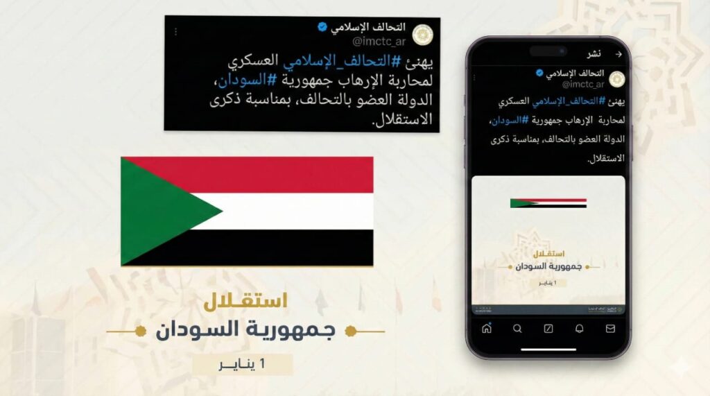 وأقام ممثلو جمهورية السودان لدى التحالف الاحتفال بهذه المناسبة، بحضور الأمين العام للتحالف وعدد من ممثلي ومندوبي الدول الأعضاء، حيث نُقلت التهاني باسم التحالف والدول المشاركة إلى القيادة السودانية والشعب السوداني، إشادةً بتضحيات الأجيال التي مهّدت لاستقلال البلاد في الأول من يناير عام 1956.