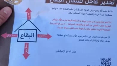 لبنان: الاحتلال يلقي منشورات لإخلاء «البقاع» و«حزب الله» يحذر من «الباركود»