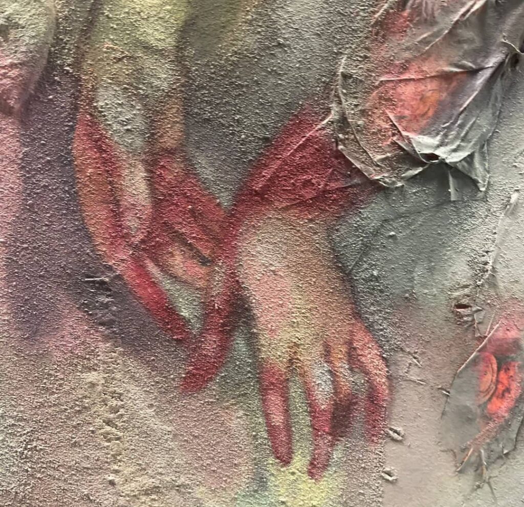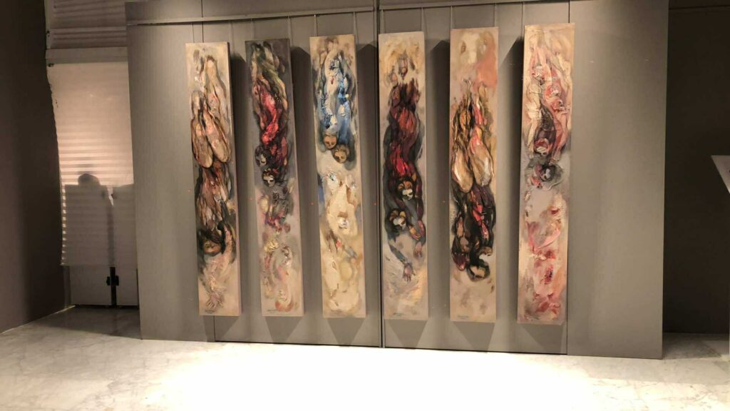 يتضمن المعرض 14 لوحة متعددة الحجم والتقنيات، تجمع بين الأكريليك والزيوت والفحم والرمل والكولاج لتشكيل تجربة بصرية غنية بالرموز الإنسانية والسياسية.