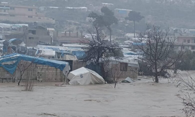سوريا : السيول تغرق خيام النازحين بريفي إدلب الغربي واللاذقية