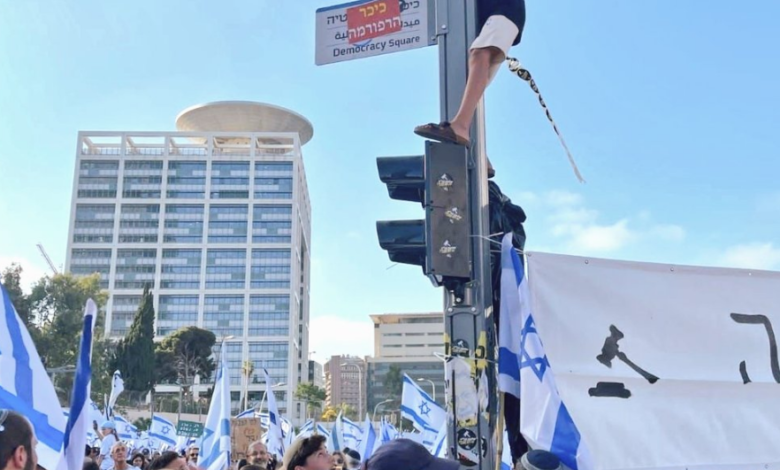 في تل أبيب، في الموقع الذي أصبح اسما مرادفا للاحتجاجات المناهضة للإصلاح حيث يلتقي شارع كابلان بأبراج عزريئلي، نظمت حشود من أنصار الحكومة مظاهرة تحث التحالف على المضي قدما في الخطة. وهذا هو ثالث تجمع كبير لأنصار الإصلاح منذ إعلان الخطة في يناير.