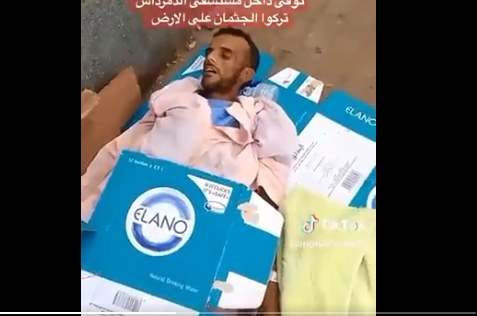 وكشف الفيديو المتداول جثمان لشخص متوفي على باب مستشفى وحوله عدد من الأشخاص يستغيثون بالمسئولين الذين تقاعسوا عن التعامل مع هذا المتوفي.