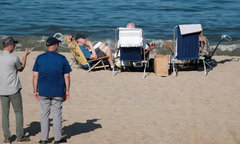 وظهر بايدن يستمتع بحرارة الشمس ومنظر البحر عند شاطئ Rehoboth في ديلاوير، ويتناول المشروبات.
