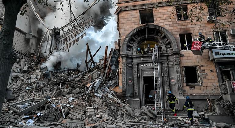 وأوضح البيان أن الجيش الروسي أسقط 4 منها، فيما سقط واحد منها بعد انفجاره فوق المدينة، وأسفر الهجوم عن مقتل 5 أشخاص بينهم 3 أطفال، وأصيب 124 شخصًا بينهم 27 قاصرًا بجروح متفاوتة الخطورة.