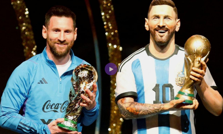 تمثال لـ ميسي بجوار مارادونا وبيليه في متحف الاتحاد القاري بأمريكا الجنوبية
