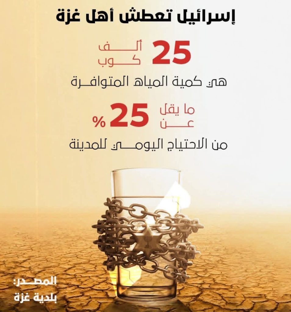 الأزمة لم تعد مجرد نقص في الخدمات، بل كارثة وجودية تضع غزة على حافة مجاعة مائية، وتهدد بتحويل المدينة إلى بؤرة أمراض وأوبئة، في واحدة من أبشع صور الحصار والمعاقبة الجماعية.