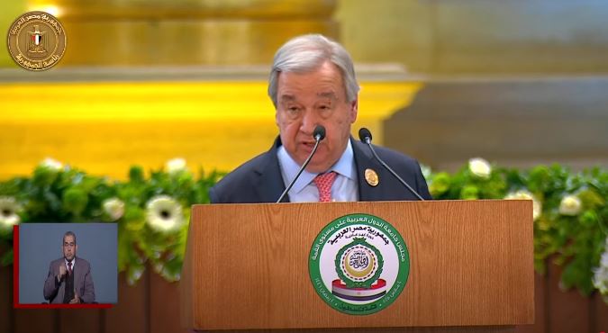 وقال جوتيريش، في كلمته أمام القمة العربية الطارئة في القاهرة، أنه يجب تذليل كل العقبات أمام وصول المساعدات الإنسانية إلى غزة.