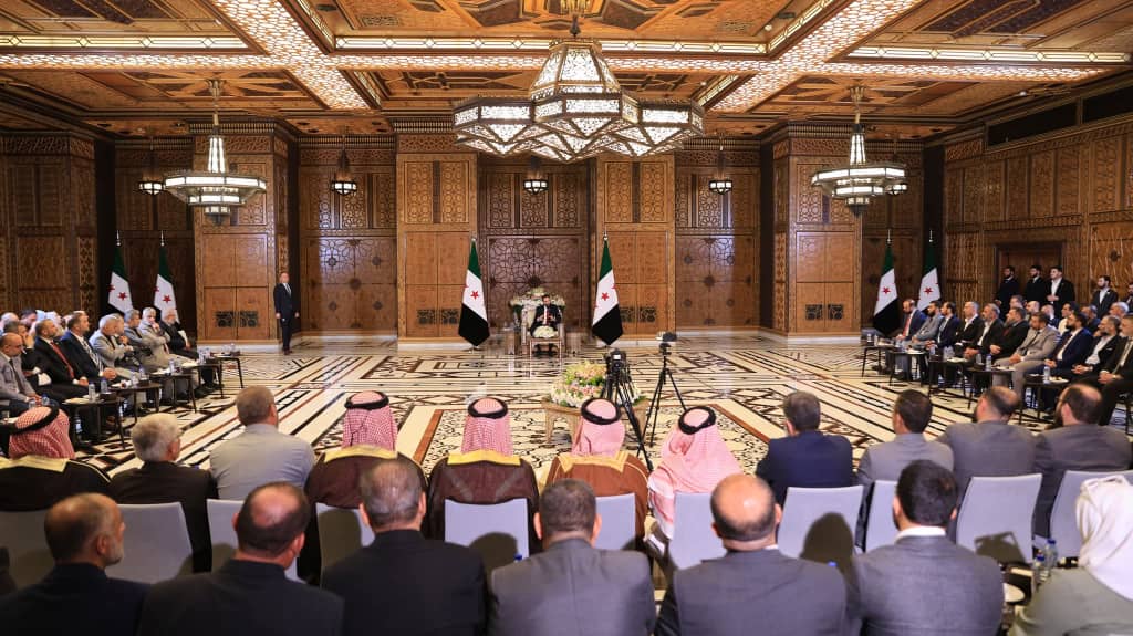 في مستهل اللقاء تطرق الشرع إلى الوضع في إدلب قبل التحرير وما رافقه من تعقيدات مشدداً على أن المحافظة اليوم تشكل منطلقاً لبناء الدولة الوطنية الحديثة رغم ما وصفه بـ”إرث ثقيل من الدمار وخزينة شبه فارغة” وأكد أن عملية إعادة البناء لن تكون سهلة لكنها ممكنة بالعزيمة والإرادة.