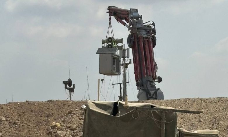 نصب الجيش الإسرائيلي اليوم عددا من السماعات كبيرة الحجم على طول محور نتساريم في قطاع غزة بهدف نقل خطاب رئيس الوزراء الإسرائيلي بنيامين نتنياهو على الهواء مباشرة داخل القطاع .