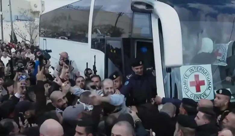 وأظهرت الصور وصول الأسرى المفرج عنهم إلى مدينة رام الله وسط استقبال شعبي كبير من ذويهم وأقاربهم.