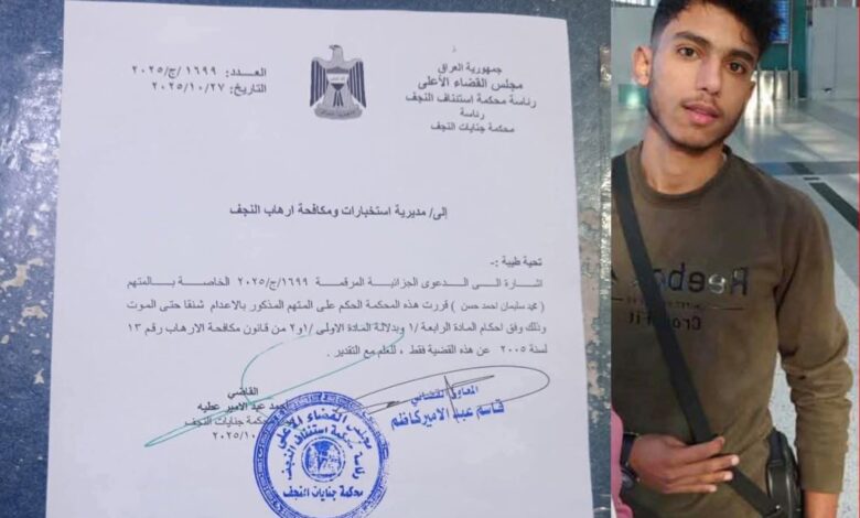 أثار حكم صادر عن محكمة جنايات النجف في العراق بإعدام شاب سوري يبلغ من العمر 22 عاماً جدلاً واسعاً على وسائل التواصل الاجتماعي، وسط تساؤلات حول عدالة الإجراءات القضائية ودوافع الحكم.