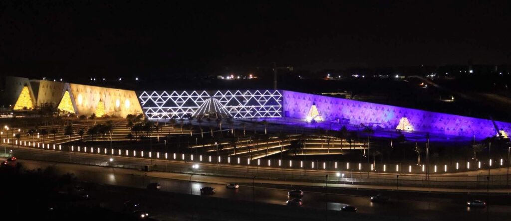 مصر – شهدت العاصمة المصرية القاهرة، السبت، إفتتاح المتحف المصري الكبير في حفل ضخم بحضور الرئيس المصري عبد الفتاح السيسي، ومشاركة دولية ودبلوماسية واسعة، وسط أجواء إحتفالية تضمنت عروضًا موسيقية وضوئية جسدت رمزيات للحضارةالمصرية وموروثاتها ، ويقع المتحف عند هضبة الجيزة على بعد نحو كيلومترين من منطقة الأهرامات.
