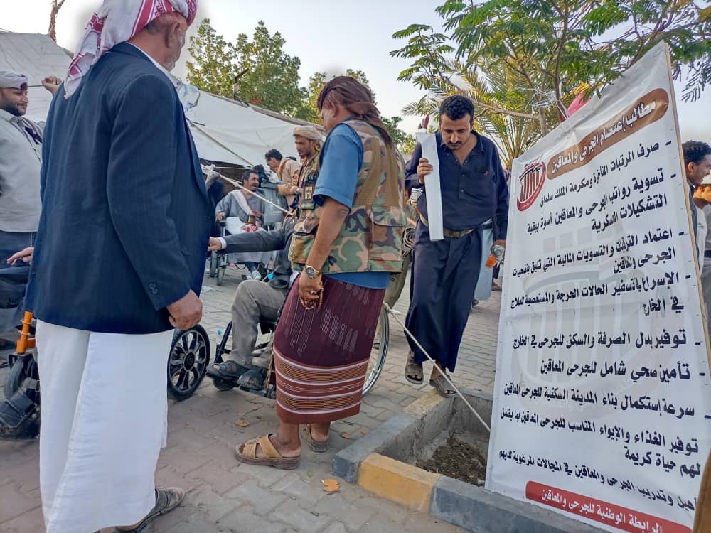 جرحى الجيش اليمني يعتصمون في مأرب احتجاجاً على الحكومية