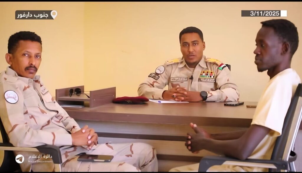 وظهر الصحفي في مقطع مصوّر بثّته الميليشيا عقب توقيفه، وهو يعرّف بنفسه أثناء وجوده وسط مجموعة من الجنود، مؤكداً أنه أُوقف أثناء محاولته مغادرة المدينة. كما ظهر لاحقاً في مقابلة قصيرة أعقبت اعتقاله، حيث بدا محاطاً بعناصر مسلّحة، وأفاد بأنه نُقل إلى مدينة نيالا وأنه تواصل مع أسرته.