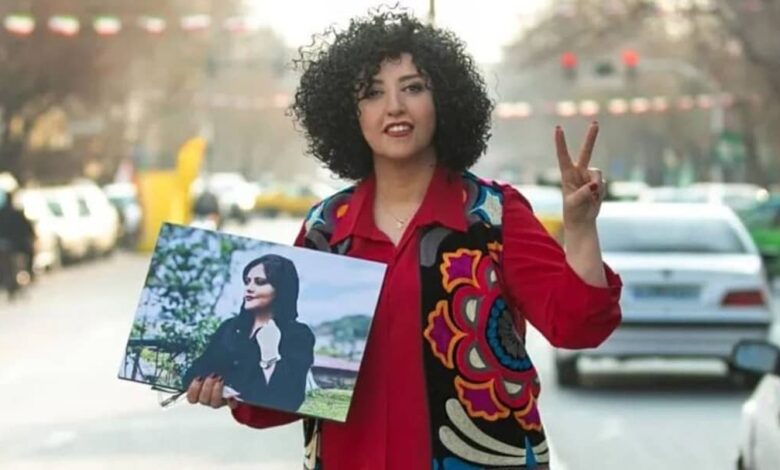وتُعد نرجس محمدي ناشطة سياسية وحقوقية اعتُقلت مرات عديدة على خلفية اتهامات مختلفة في إيران. وفي عام 2023 حصلت على جائزة نوبل للسلام، ووصفتها لجنة الجائزة بأنها «قائدة حقيقية» لحركة المرأة، الحياة، الحرية، وأشادت بجهودها لتحسين أوضاع حقوق الإنسان في إيران.