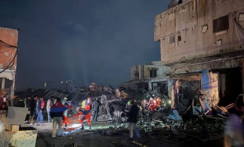 وأفادت مصادر محلية أن الغارة أدت إلى تدمير المبنى بشكل كامل، وسط أضرار واسعة في محيط الاستهداف، فيما هرعت فرق الإسعاف والدفاع المدني إلى المكان لانتشال الضحايا ونقل المصابين إلى المستشفيات القريبة.