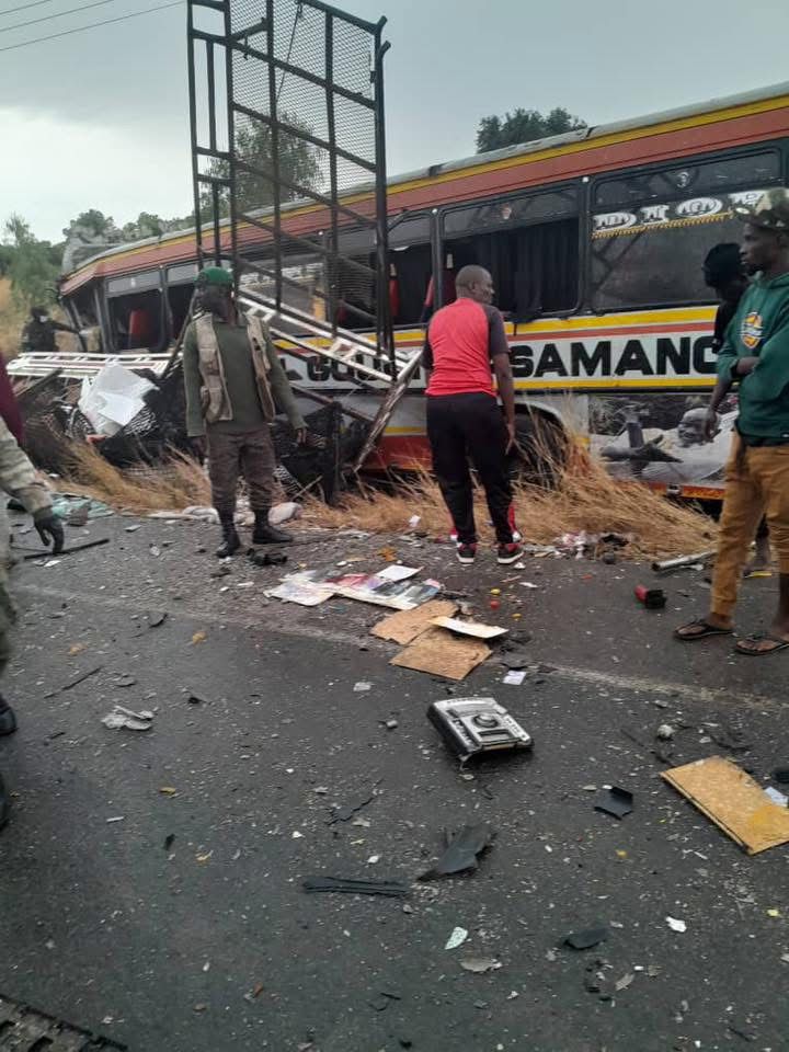 ووقع الحادث نحو الساعة العاشرة صباحًا من يوم الأربعاء الموافق السابع من يناير، على الطريق العابر لغامبيا، حيث اصطدمت حافلة صغيرة تقل أربعة عشر راكبًا قادمة من زيغينشور بحافلة أكبر كانت في طريقها من داكار نحو إقليم كازامانس.
