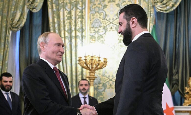 بوتين يستقبل الشرع في موسكو: “ملتزمون بإعادة إعمار سوريا وتعزيز الشراكة الاقتصادية”