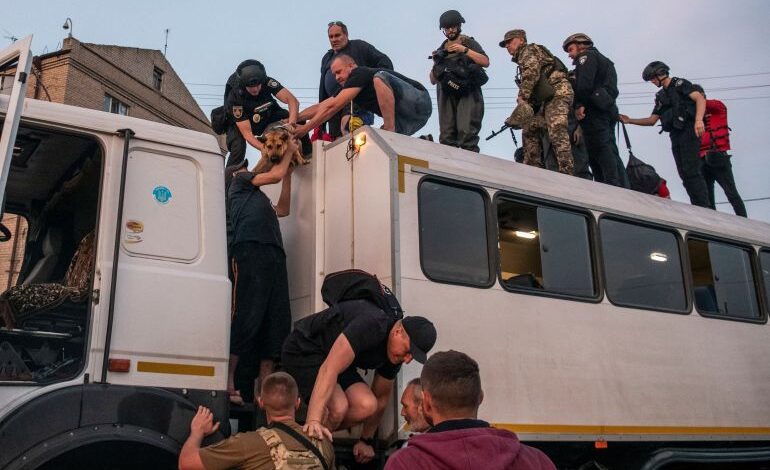 وأعلن مسؤول في الرئاسة الأوكرانية ظهر اليوم إجلاء ألفين من سكان المنطقة بعد دمار السد، وقالت السلطات إن عمليات الإجلاء ستستمر الأربعاء وفي الأيام المقبلة بالحافلات والقطارات.