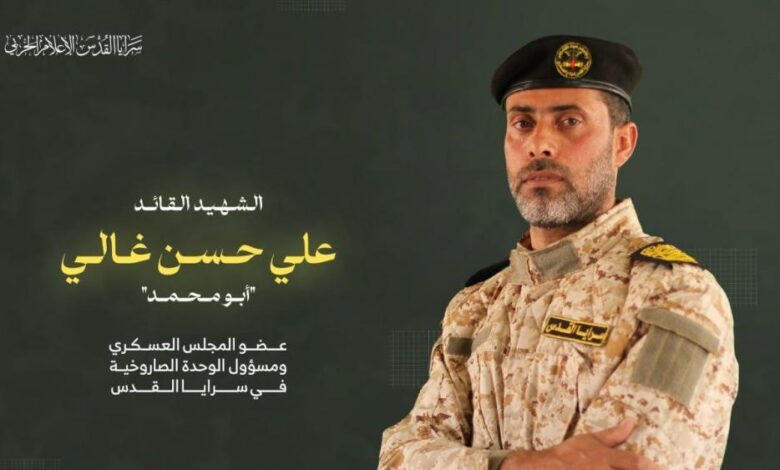 نعت فصائل المقاومة الفلسطينية الشهيد القائد علي غالي، عضو المجلس العسكري لسرايا القدس ومسئول الوحدة الصاروخية فيها، والذي اغتالته “إسرائيل” فجر اليوم الخميس بقصف حربي لشقة بمدينة حمد في خان يونس جنوب قطاع غزة.