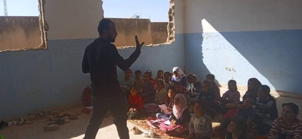 يصر عشرات الأطفال على ارتياد الفصول المتهالكة يومياً متحدين خطر الانهيار وغياب الإمكانيات فقط لمواصلة تعليمهم. وتعرضت المدرسة الوحيدة في القرية لدمار واسع تاركة الطلاب أمام خيارين الانقطاع عن التعليم أو متابعة الدروس في بيئة تفتقر لأبسط معايير السلامة. وقد اختار الأطفال الخيار الأصعب… الاستمرار.