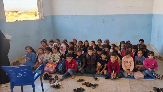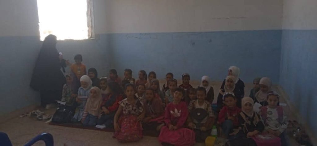 المدرسة بلا مقاعد أو أبواب أو نوافذ لا تتوفر في المدرسة مقاعد لجلوس التلاميذ ولا سبورات للكتابة عليها ولا أبواب أو نوافذ تحمي من برد الشتاء ولا حتى دورات مياه مناسبة. و بالإمكانيات المتاحة أحضر المعلمون أنصاف سبورات وبعض البطانيات ليجلس عليها الطلاب كما يجلب كل معلم كرسيه الشخصي يومياً إلى المدرسة ليأخذوه معه عند الانصراف كل ذلك بهدف إنقاذ مستقبل أكثر من 230 تلميذ/ة من الصف الأول حتى السادس.