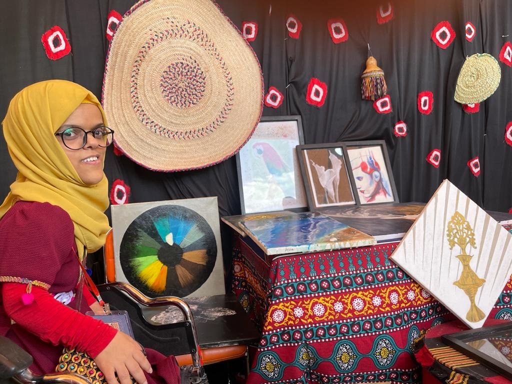 “آسيا”.. بيدٍ واحدة تتحدى الإعاقة وتصنع فناً ينتصر على الواقع
