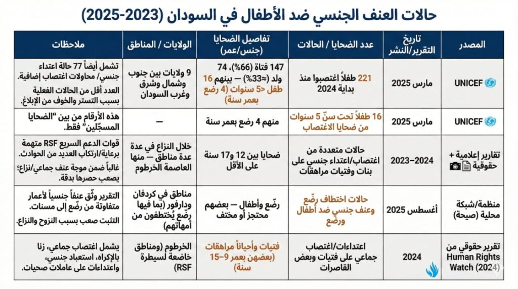رصد مبنى على التقارير الدولية والإعلامية لحوادث الاعتداء على الأطفال في السودان (2023_2025)..