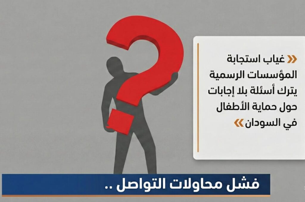 خلال إعداد هذا التحقيق، حاولنا في مراسلين التواصل مع الجهات المختصة بحماية الطفل في السودان، بما في ذلك منظمة رعاية الطفولة السودانية والمجلس القومي لرعاية الطفولة ومكتب اليونيسف في السودان. أرسلنا خطابات رسمية عبر البريد الإلكتروني، وتواصلنا أيضًا عبر حساباتهم المعتمدة على منصات التواصل الاجتماعي، لكننا لم نتلقَّ أي رد حتى لحظة النشر. كما تواصلنا مع المكتب الإعلامي لمنظمة تنمية الأطفال في السودان الذي وعد بربطنا بالمسؤولين المعنيين، غير أن هذا التواصل لم يكتمل، ولم تصلنا أي إفادة رسمية منهم.