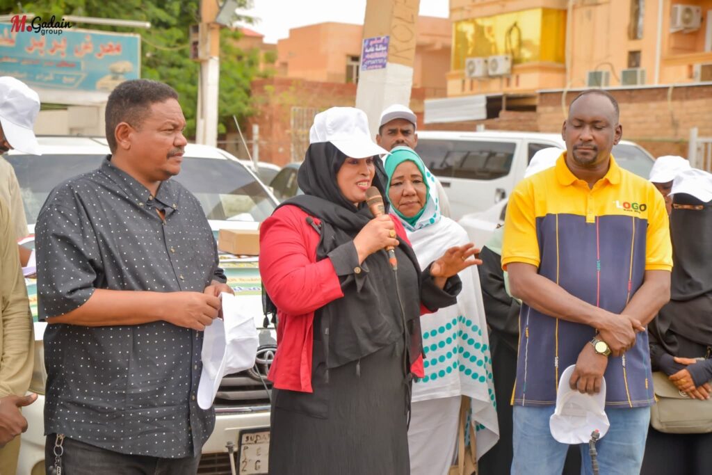 وتشير إلى أن العمل شمل بناء مدرسة للمرحلة المتوسطة بشرق النيل، تحديدًا في قرية الشريق، إلى جانب تنفيذ مشروعات للطاقة الشمسية، وحفر آبار، وتوفير مبردات حرارية للمدارس. وتضيف أن المبادرات امتدت كذلك إلى إسناد القوات المسلحة في الخطوط الأمامية، والعمل في مجالات العلاج والإطعام والسقاية، فضلًا عن تنظيم بازارات خيرية للأرامل والأسر المنتجة، أسفرت عن توزيع مئة مشروع إنتاجي لمئة أرملة.