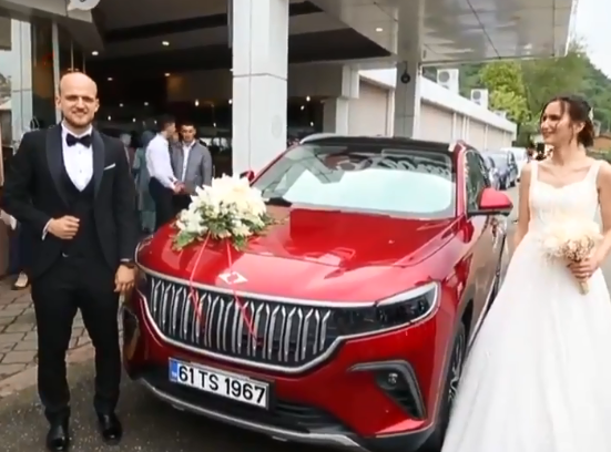 فيديو.. وزير النقل التركي يقدم سيارته المحلية “توغ” هدية لعروسين