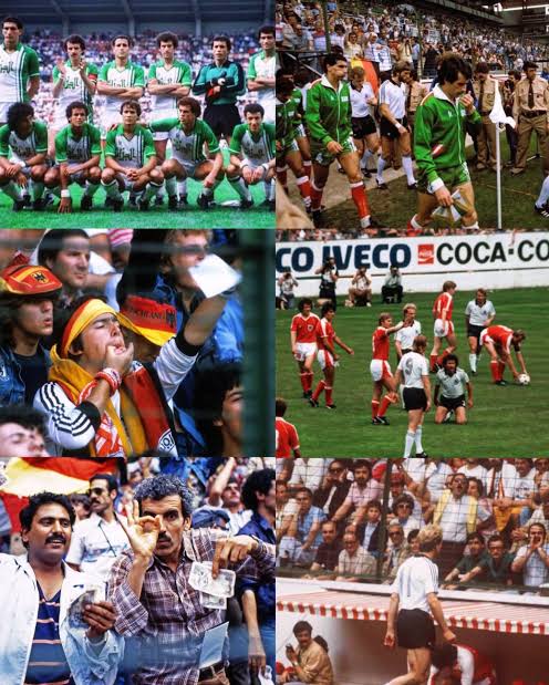 في تلك النسخة قدم “الخضر” أداءً تاريخياً، فازوا على ألمانيا الغربية ثم على الشيلي، وكانوا يستحقون التأهل إلى الدور الثاني، لكن التواطؤ بين ألمانيا الغربية والنمسا في المباراة الأخيرة أنهى آمال الجزائر ، المباراة التي لعبت بـ” أسوأ روح رياضية ممكنة” وانتهت بنتيجة محسوبة خدمت الطرفين، تحت تصفيرات الجماهير الإسبانية و أثارت المباراة استنكارا عالميا، لدرجة أن لاعبين ومسؤولين من البلدين اعترفوا لاحقا بالخجل من تلك المواجهة، وقد صدرت اعتذارات من ألمانيا والنمسا بعد سنوات طويلة.
