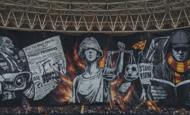بعيداً عن المستطيل الأخضر، خطفت جماهير الترجي التونسي الأنظار بـ “تيفو” عالمي حمل رسائل سياسية وإنسانية عميقة.