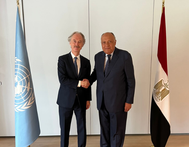 وصرح السفير أحمد أبو زيد، المُتحدث الرسمي باسم وزارة الخارجية، بأن اللقاء شهد استمرار الحوار بين مصر والأمم المتحدة حول سبل حل الأزمة السورية بشكل متدرج وفق مقاربة خطوة مقابل خطوة على نحو ما تناولته اجتماعات جدة وعمان والقمة العربية الأخيرة بجدة وبما يتوافق مع قرار مجلس الأمن رقم ٢٢٥٤.