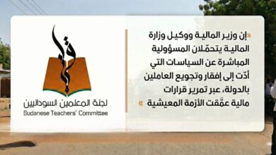 نشوة أحمد الطيب_مراسلين حذّرت لجنة المعلّمين السودانيين من تفاقم الكارثة المعيشية التي يواجهها المعلّمون في السودان، مؤكدة أن مقترحات ميزانية…