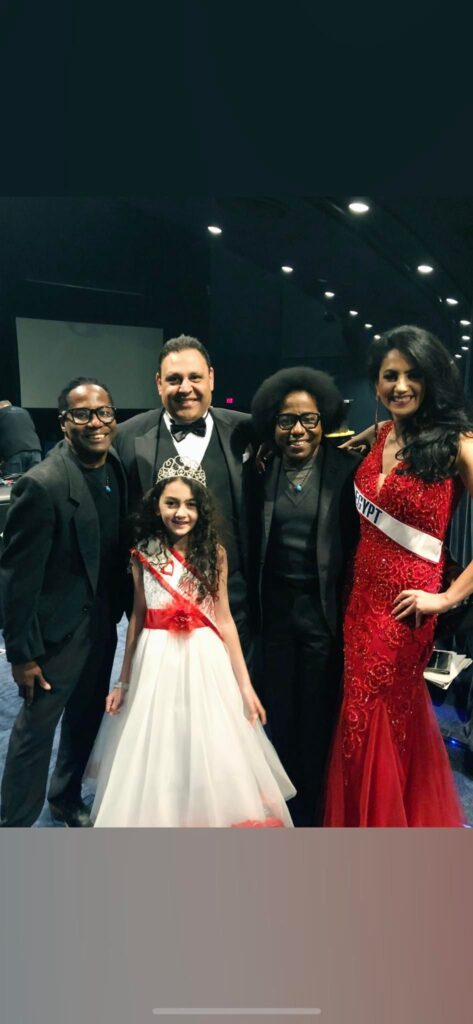 وكذلك اولادي كانوا متحملين المسؤلية في غيابي وفخورين بيا جدا وبالمناسبة بنتي حصلت علي لقب ميس واشنطن برينسس وكنت فرحانه جدا بيها لان المسابقة زودت ثقتها بنفسها وجعلتها اكتر جرأة انها تكون علي المسرح وامام الجمهور ولجنة التحكيم في سن صغير. بس اللي ابهرني فعلا خلال المسابقة هو اني عندي اصدقاء من جنسيات مختلفة دعموني وساعدوني بدون اي مقابل او بدون حتي ما اسألهم فمثلا ليا صديقة من الهند هي تعيش في واشنطن سافرت خصيصا الي لاس فجس يوم المسابقة لكي تكون من بين الجمهور لكي تدعمني وتحفزني وصديقة اخري من جاميكا جاءت ليلة السفر ساعدتني في كل التجهيزات وتحضير الشنط . طبعا غير اصدقائي المصريين اللي ممكن صعب جدا نتفق كلنا علي يوم واحد لكي نخرج فيه كلهم اتفقوا وسافروا الي لاسفجاس يوم المسابقة لكي يكونوا بجانبي ويساندوني.