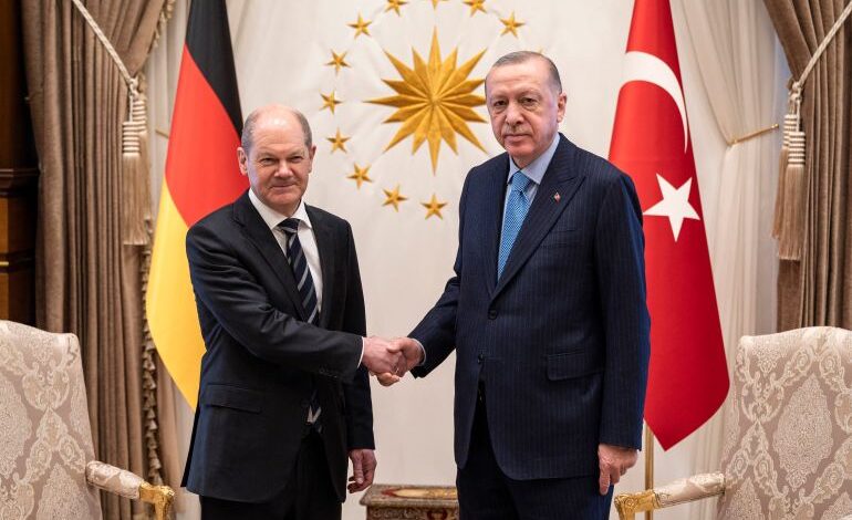 بحث الرئيس التركي رجب طيب أردوغان مع المستشار الألماني أولاف شولتز آخر التطورات في روسيا، ومسألة انضمام السويد لحلف شمال الأطلسي (الناتو).